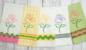 Embroidery designs are great for embellishing a towel. But, if you add some decorative trim, it really takes things up a notch!