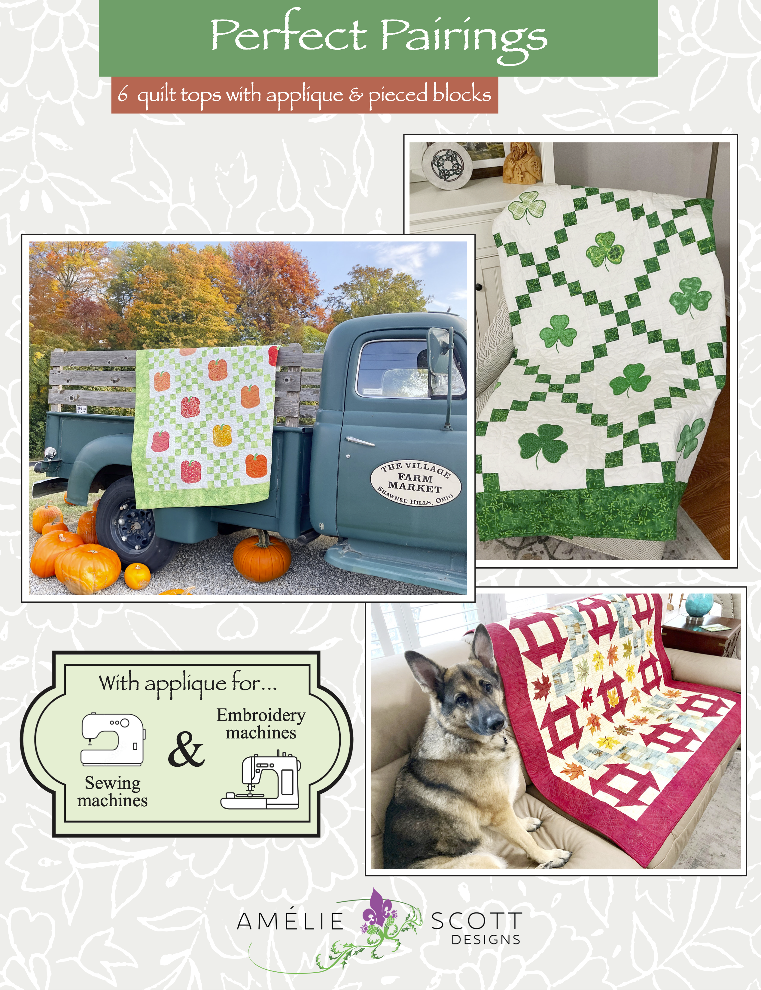 Prepare for some fun! The quilts in this collection feature two great blocks, that look great together! All 6 quilts are made using a fun applique block, paired with a traditional pieced block.